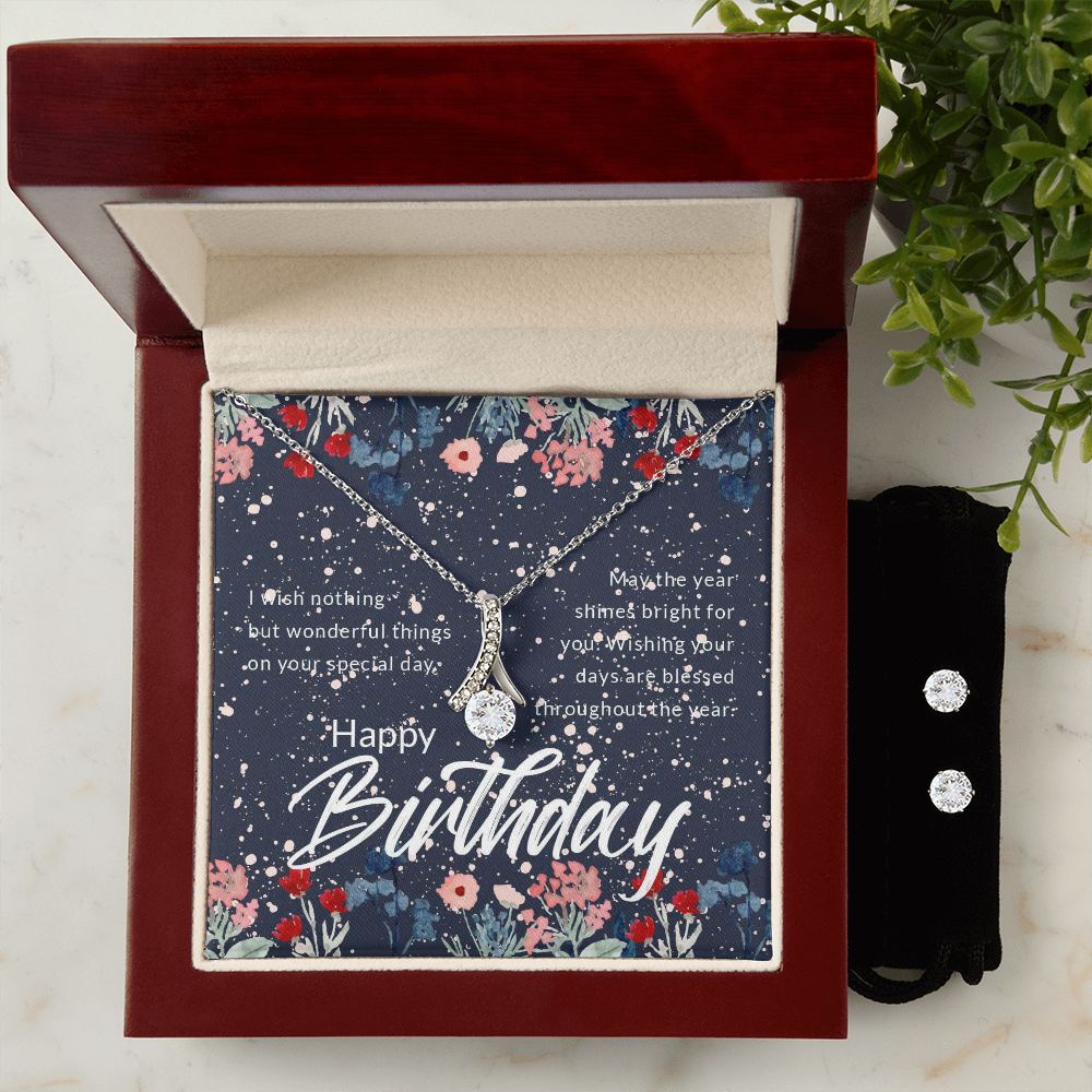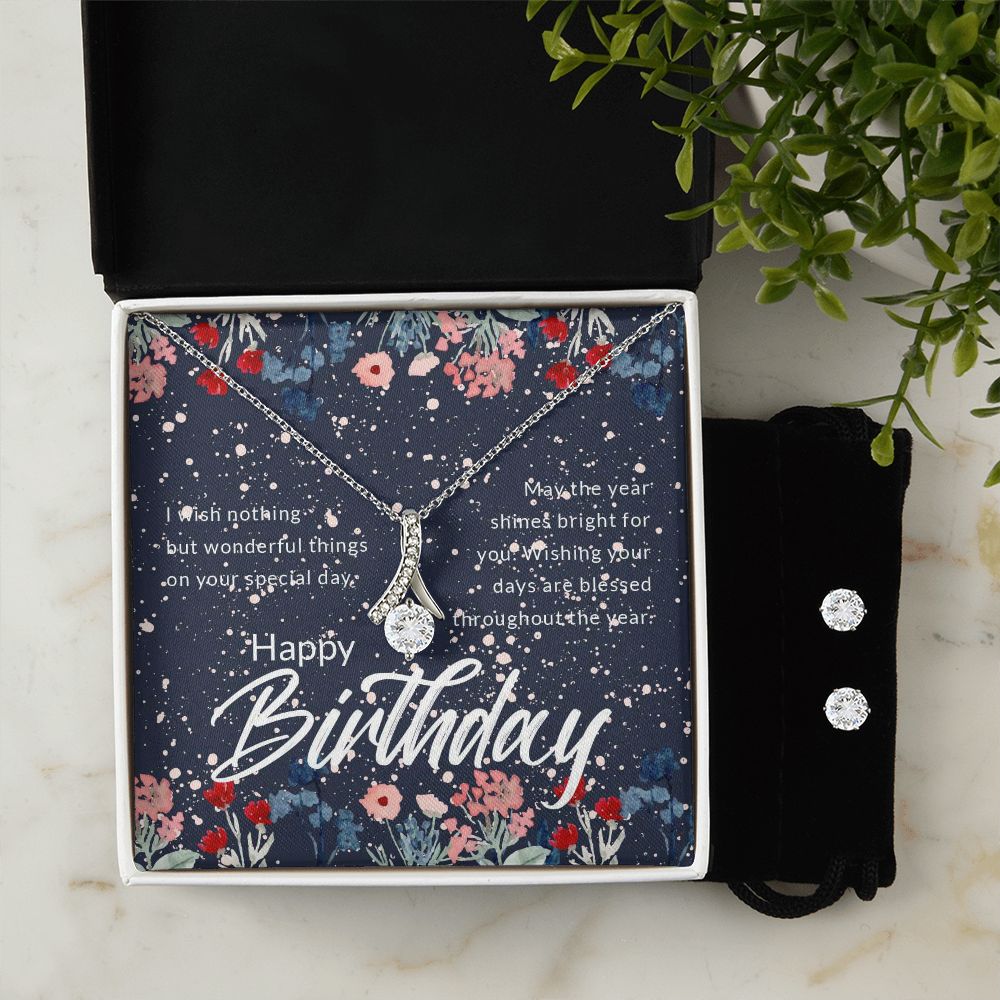 Gift For Her Birthday - Alluring Beauty Necklace and Cubic Zirconia Earring Set